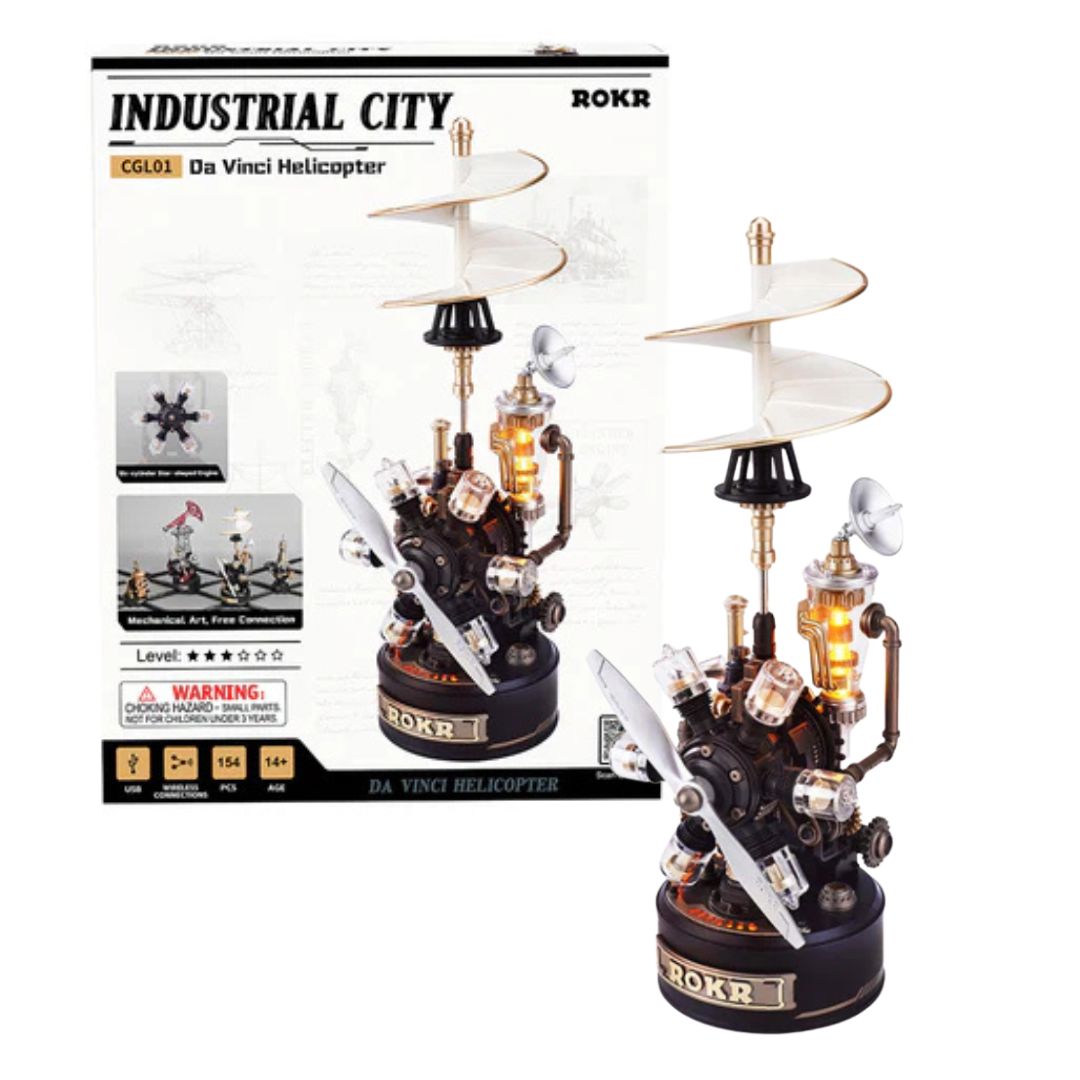 Il y a près de cinq siècles, Leonardo da Vinci esquissait un hélicoptère dans ses carnets, avec des ailes spirales, un moteur naïf et une ambition démesurée : voler. Aujourd’hui, ce rêve prend vie sous vos doigts dans la collection « Industrial City » de ROKR. Constructeur, rêveur ou collectionneur : ce modèle est une invitation à fusionner histoire, mécanique et émerveillement.
