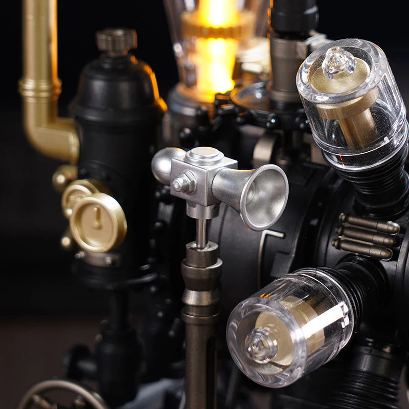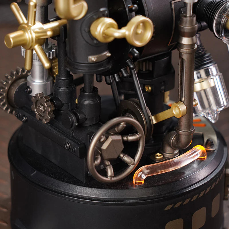 • Le mécanisme prend vie sous vos yeux : les engrenages tournent, les pales s’élancent, la lumière pulse dans le cœur de la machine.